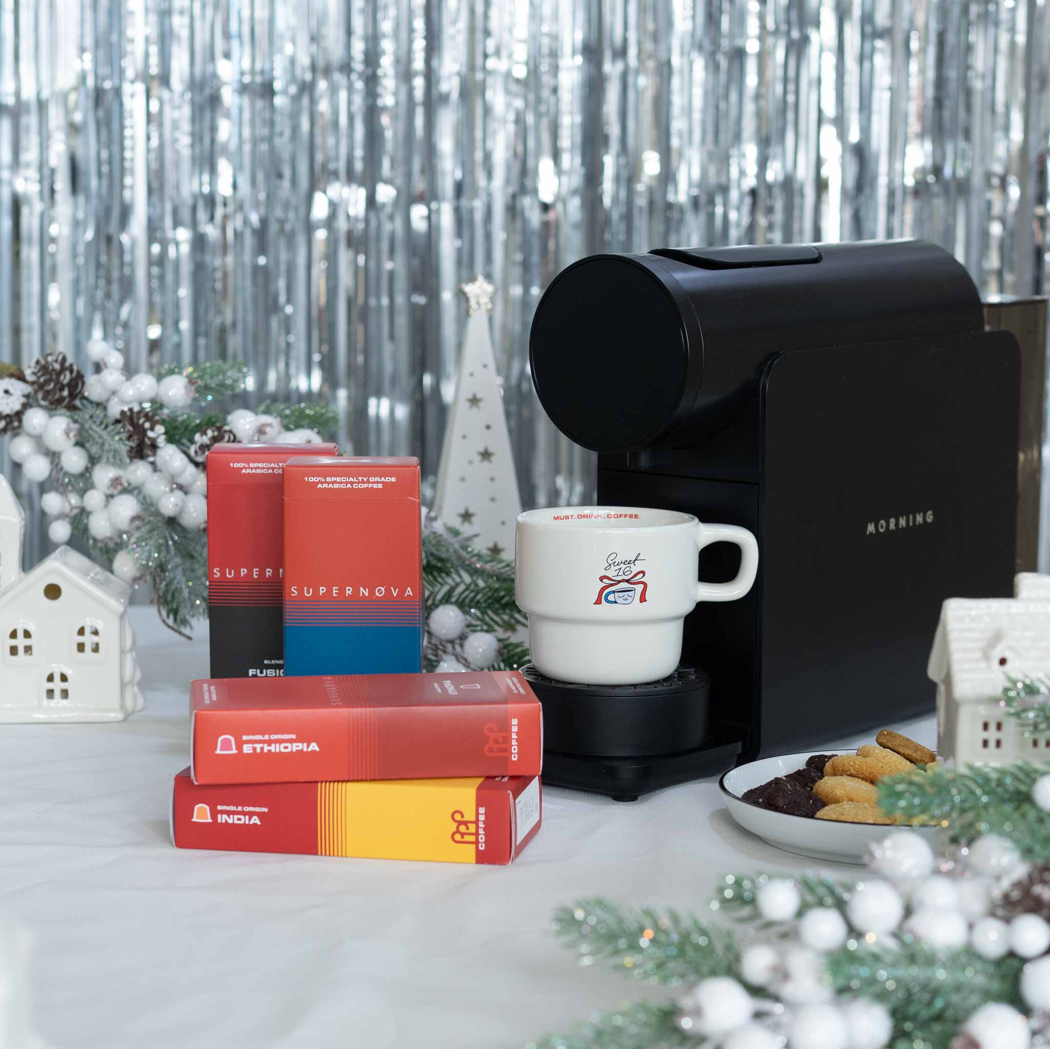 Designed to elevate the home-coffee drinking experience with precise controls that also delivers a convenient and intuitive experience for both the home barista and the everyday coffee drinker, the Morning machine sets itself apart from traditional capsule machines with these 3 key features: - 10 Curated Recipes, Access To World-Class Roaster Recipes, Personalised "Brew-By-You" Dashboard