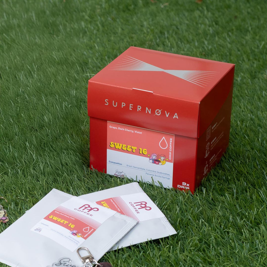 Get one (1) SADSHRIMPS X PPP Coffee: Sweet 16 Keychain Blind Bag when you purchase a box of Sweet 16 Blend Supernova Drip Bags. While stocks last!